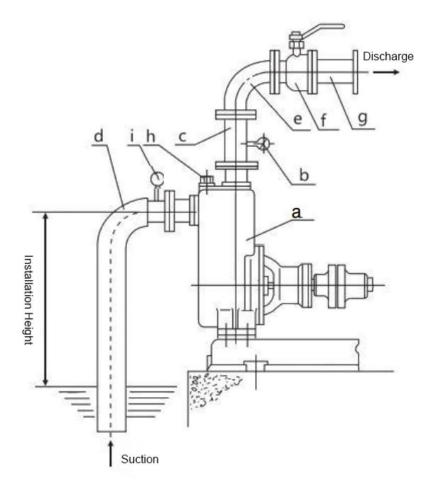 | a. Bomba | d. Tubo de sucção | g. Tubo de saída |