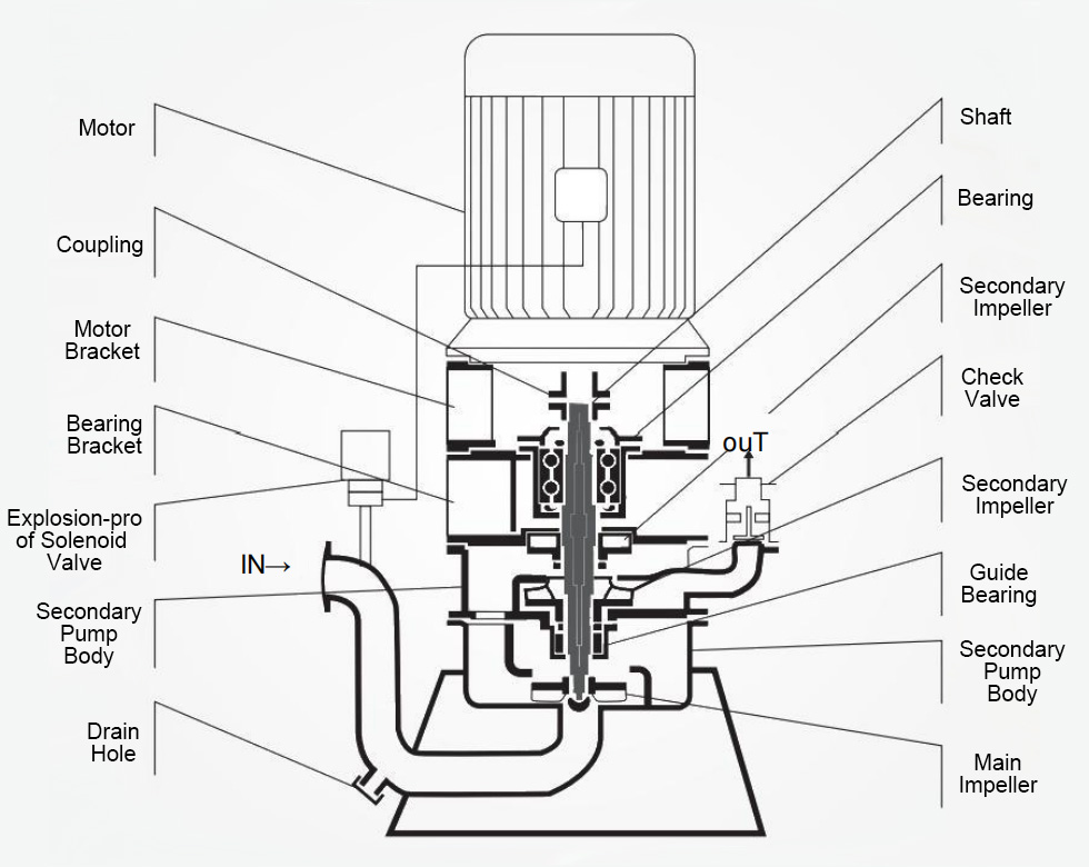 Ao utilizar tecnologia de vedação hidrodinâmica, esta bomba evita os problemas de desgaste e vazamento associados às vedações convencionais. É uma substituta perfeita para bombas verticais de imersão, de esgoto e submersíveis, pois não apresenta vazamentos. Sua vida útil é mais de dez vezes maior do que a de bombas verticais e submersíveis devido ao seu funcionamento sem desgaste e sem atrito. Ela se autoescorva instantaneamente, removendo automaticamente o ar das tubulações, de forma semelhante a uma bomba de vácuo. Seu tamanho compacto garante uma instalação simples. O recurso de "escorvamento único, autoescorvamento vitalício" é possível graças a uma válvula solenoide de entrada opcional que libera o sifão de líquido ao ser desligada.